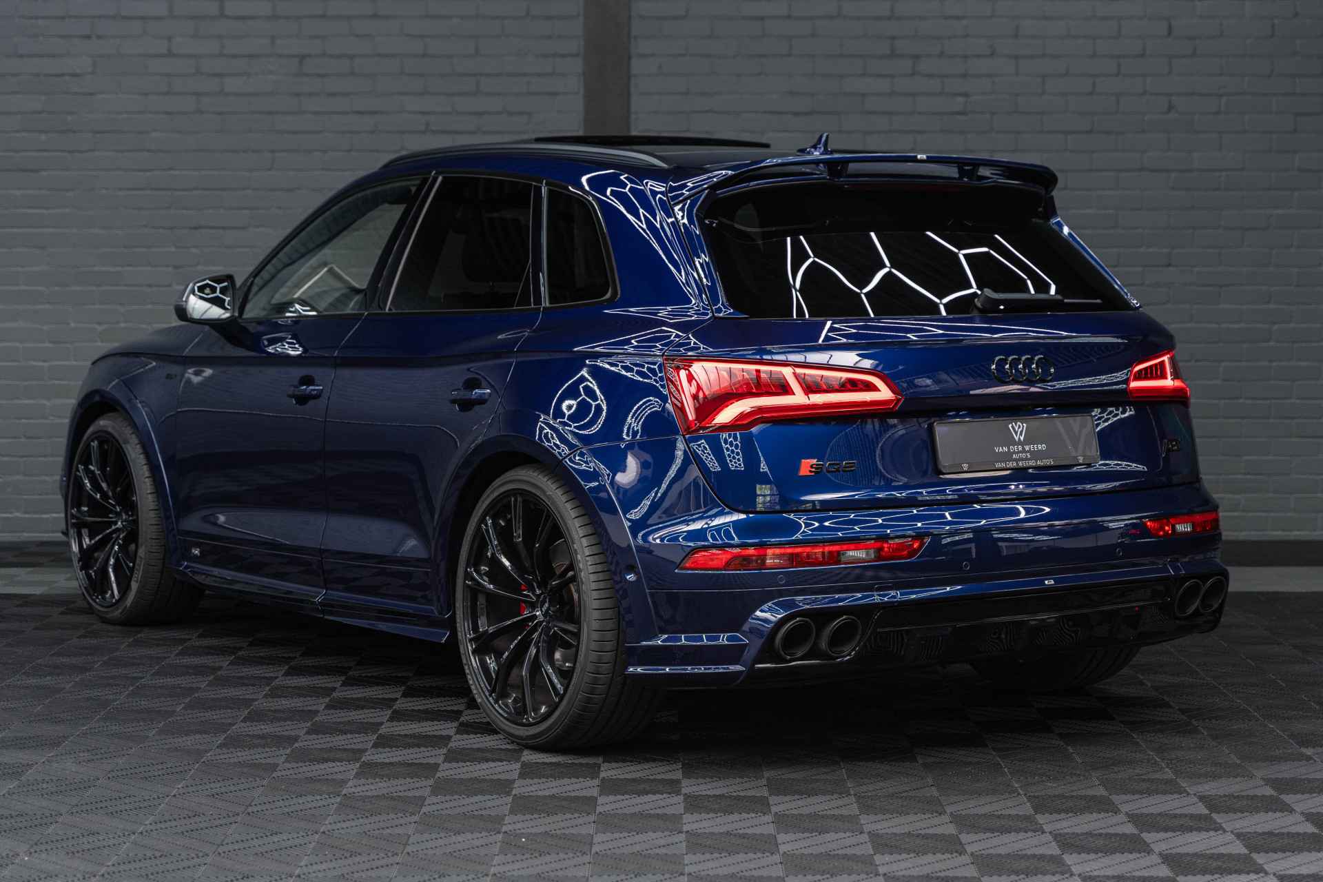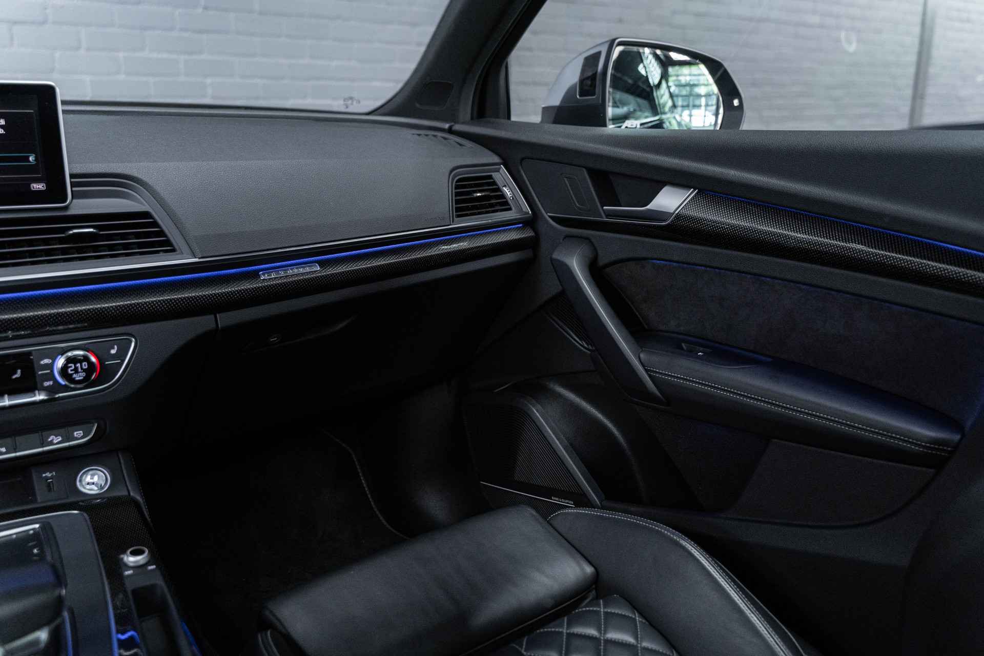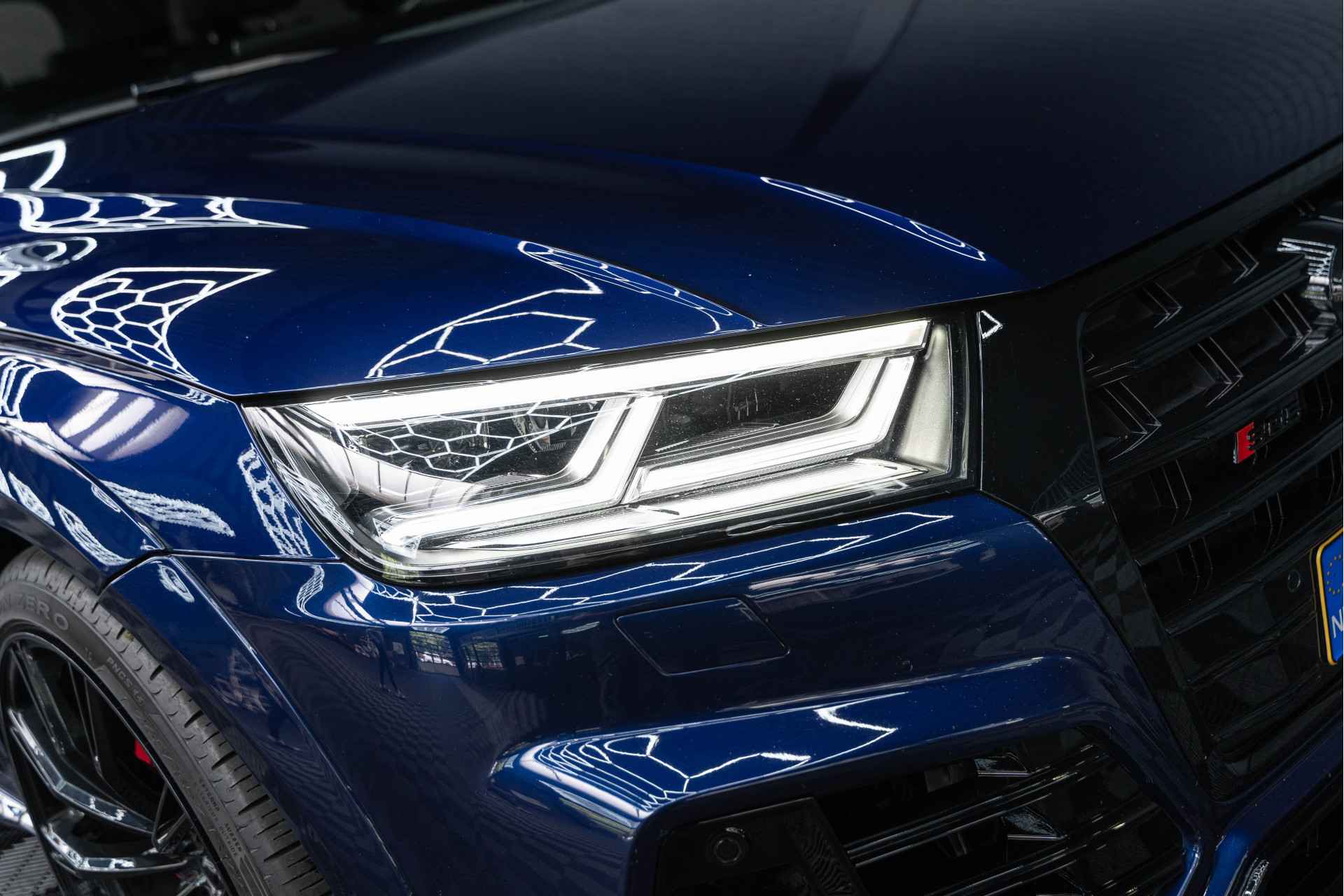 Bij het ontwerpen van de Audi SQ5 stonden uw comfort en uw veiligheid centraal. Ten opzichte van het standaard model onderscheidt deze Audi zich met sportieve S-Line styling. Dankzij de zescilinder benzinemotor en de automatische transmissie, is het autorijden snel en comfortabel. Dat noemen ze nou een ruimtelijk effect: het elektrisch bediende glazen panorama dak, dat net zo gemakkelijk open en dicht gaat als de elektrisch bedienbare achterklep. En ondertussen het ware luxegevoel van het lederen interieur. In de winter wordt het echt genieten met de stoelverwarming. Bij de uitrusting van deze Audi horen onder meer 22 inch lichtmetalen velgen, LED koplampen, sportonderstel, warmtewerend glas, dakspoiler en in delen neerklapbare achterbank.