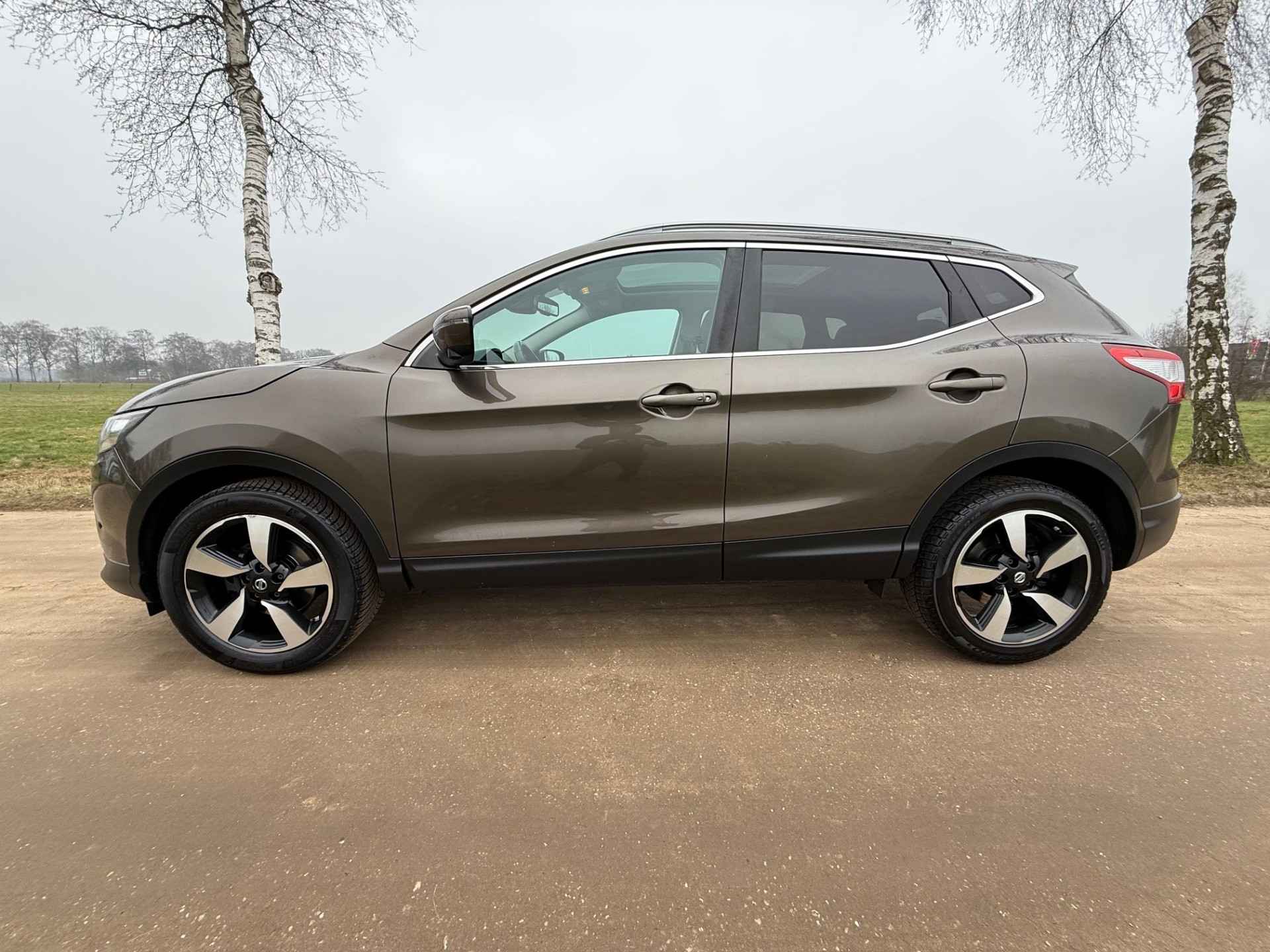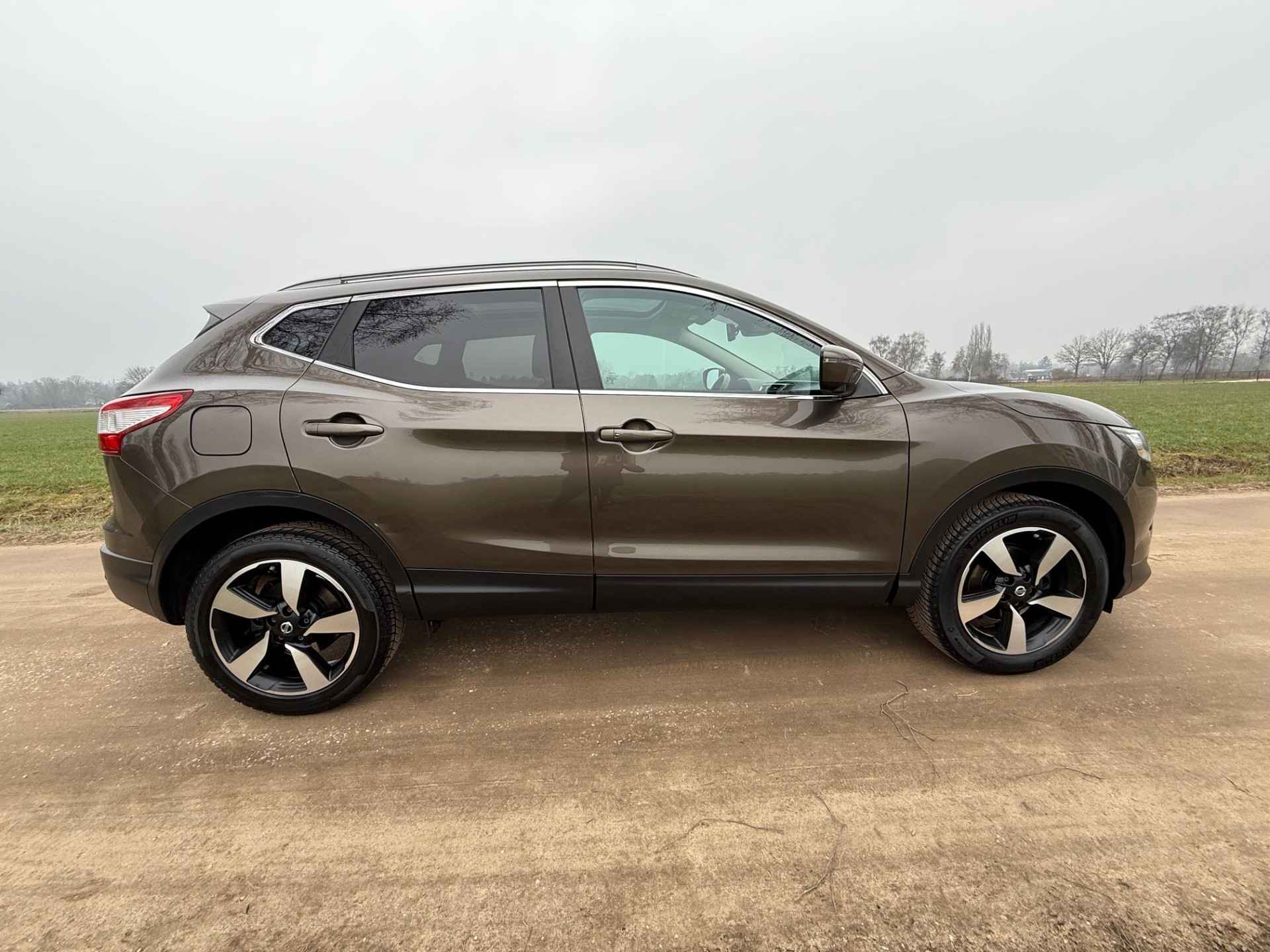 Van uw nieuwe auto verlangt u rijplezier, maar ook optimaal comfort en veiligheid. Daarom is de Nissan Qashqai de auto die u zoekt. De aandrijving van deze SUV komt voor rekening van een viercilinder benzinemotor en een automatische transmissie. Het glazen panoramadak geeft ook doordeweeks een vakantiegevoel. Wat een licht en zicht! Ook 17 inch lichtmetalen velgen, LED-dagrijverlichting, donker getint glas achter en in delen neerklapbare achterbank zijn aan boord.